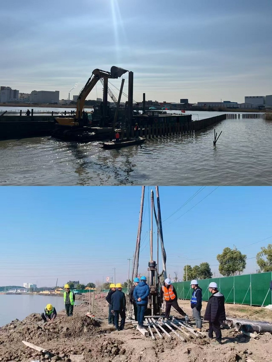 【概要描述】2月13日,在揚(yáng)州水利建筑程有限責(zé)任公司承建的吳淞江(江蘇段)整治工程(昆山市)施工八標(biāo)建設(shè)現(xiàn)場(chǎng)機(jī)械轟鳴、車輛穿梭,工人們分工合作、干勁十足,現(xiàn)場(chǎng)一片繁忙?! №?xiàng)目部在春節(jié)放假前搶抓時(shí)間完成了水泥攪拌樁、管樁、灌注樁試樁,充分利用假期時(shí)間提高強(qiáng)度以滿足檢測(cè)要求。2月9日管理人員到崗后,實(shí)時(shí)調(diào)整進(jìn)度計(jì)劃,精心組織各專業(yè)施工班組到位,將3公里施工區(qū)域劃分為9個(gè)工區(qū),護(hù)岸樁基目前進(jìn)入全面鋪開(kāi)施工階段,水