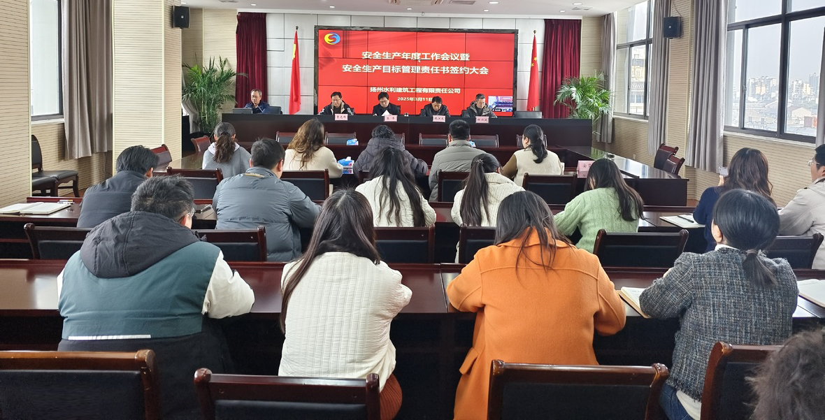 近日,揚州水利建筑工程有限責(zé)任公司召開2025年度安全生產(chǎn)工作會議,總結(jié)2024年安全生產(chǎn)工作,動員公司上下統(tǒng)籌好發(fā)展和安全,認(rèn)真做好2025年安全生產(chǎn)工作。公司領(lǐng)導(dǎo)班子成員,各部室負(fù)責(zé)人、在建工程項目經(jīng)理,專職安全員等參加會議。
