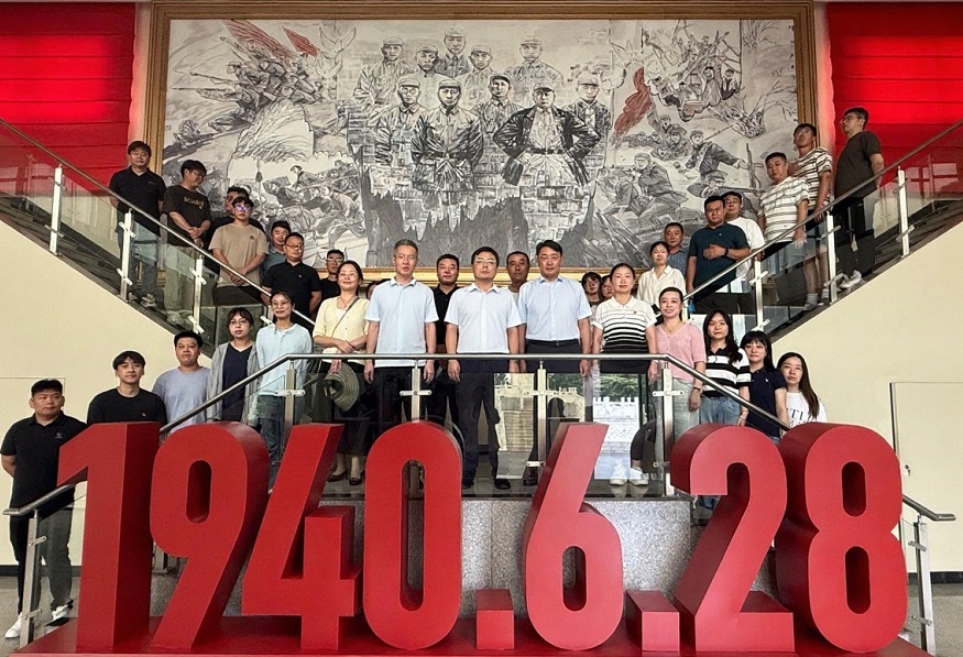 【概要描述】今年是中國人民抗日戰(zhàn)爭暨世界反法西斯戰(zhàn)爭勝利80周年,也是郭村保衛(wèi)戰(zhàn)勝利暨新四軍蘇北指揮部成立85周年,為深入學(xué)習(xí)貫徹習(xí)近平新時代中國特色社會主義思想,進(jìn)一步落實(shí)上級關(guān)于開展“黨史學(xué)習(xí)教育月”活動的精神,7月29日下午,揚(yáng)州水利建筑工程有限責(zé)任公司黨支部組織參觀郭村保衛(wèi)戰(zhàn)紀(jì)念館和新四軍蘇北指揮部紀(jì)念館,緬懷革命歷史,汲取奮進(jìn)力量。集團(tuán)黨委委員、公司黨支部書記張偉,公司領(lǐng)導(dǎo)班子成員,全體黨員,中層干