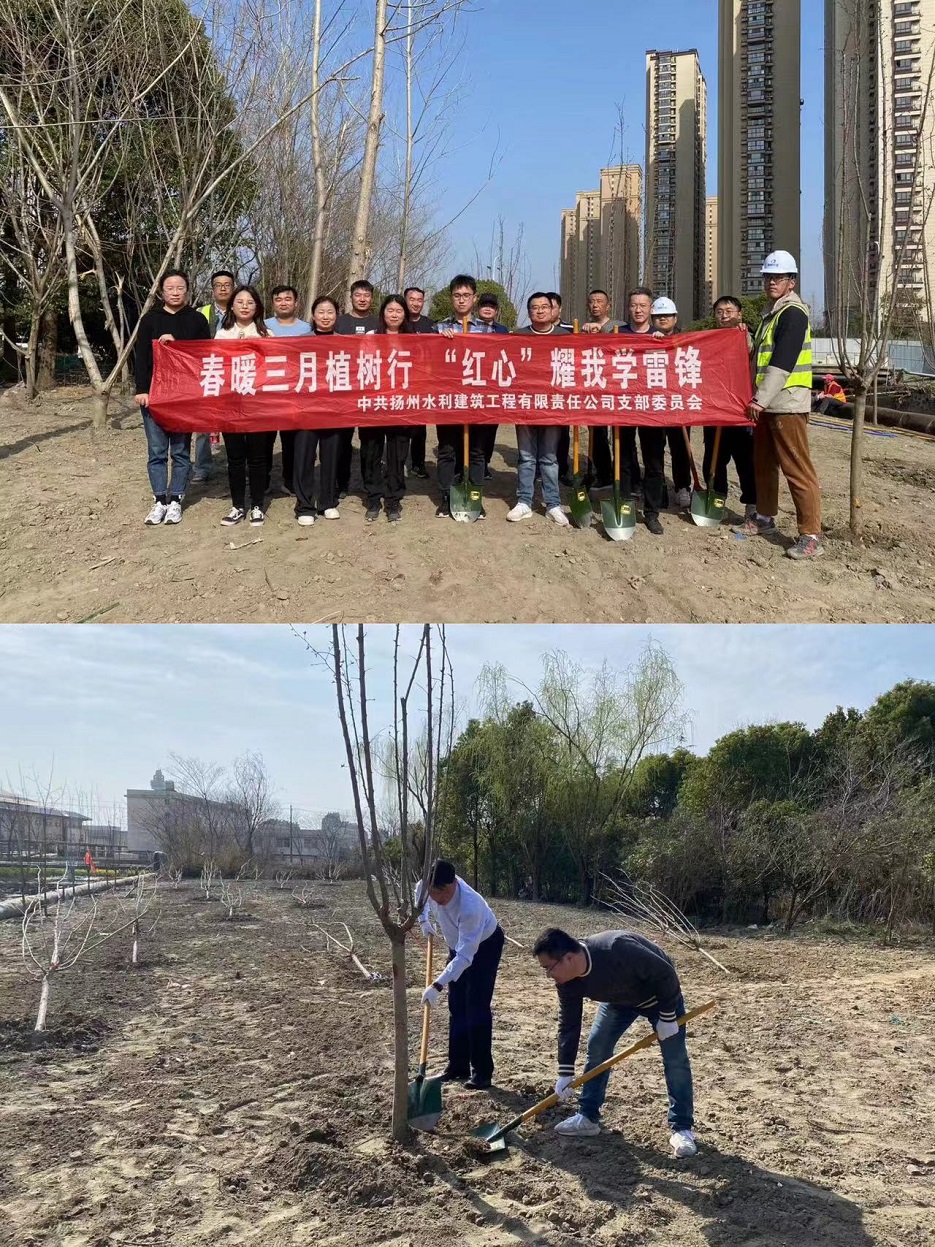 【概要描述】為貫徹落實(shí)黨的二十大精神,進(jìn)一步推進(jìn)生態(tài)文明建設(shè),弘揚(yáng)雷鋒精神,結(jié)合“學(xué)雷鋒志愿服務(wù)集中行動(dòng)月”活動(dòng)安排,3月10日下午,揚(yáng)州水利建筑工程有限責(zé)任公司黨支部聯(lián)合農(nóng)投集團(tuán)團(tuán)支部在公司開(kāi)發(fā)區(qū)EPC項(xiàng)目部二橋河整治施工現(xiàn)場(chǎng)組織開(kāi)展“春暖三月植樹(shù)行‘紅心’耀我學(xué)雷鋒”主題植樹(shù)活動(dòng)。支部全體黨員、入黨積極分子和團(tuán)員參加活動(dòng)?! ≈矘?shù)現(xiàn)場(chǎng),大家熱情高漲、干勁十足,分組勞動(dòng)、揮鍬鏟土、扶苗提樹(shù)、取水澆灌,道道工