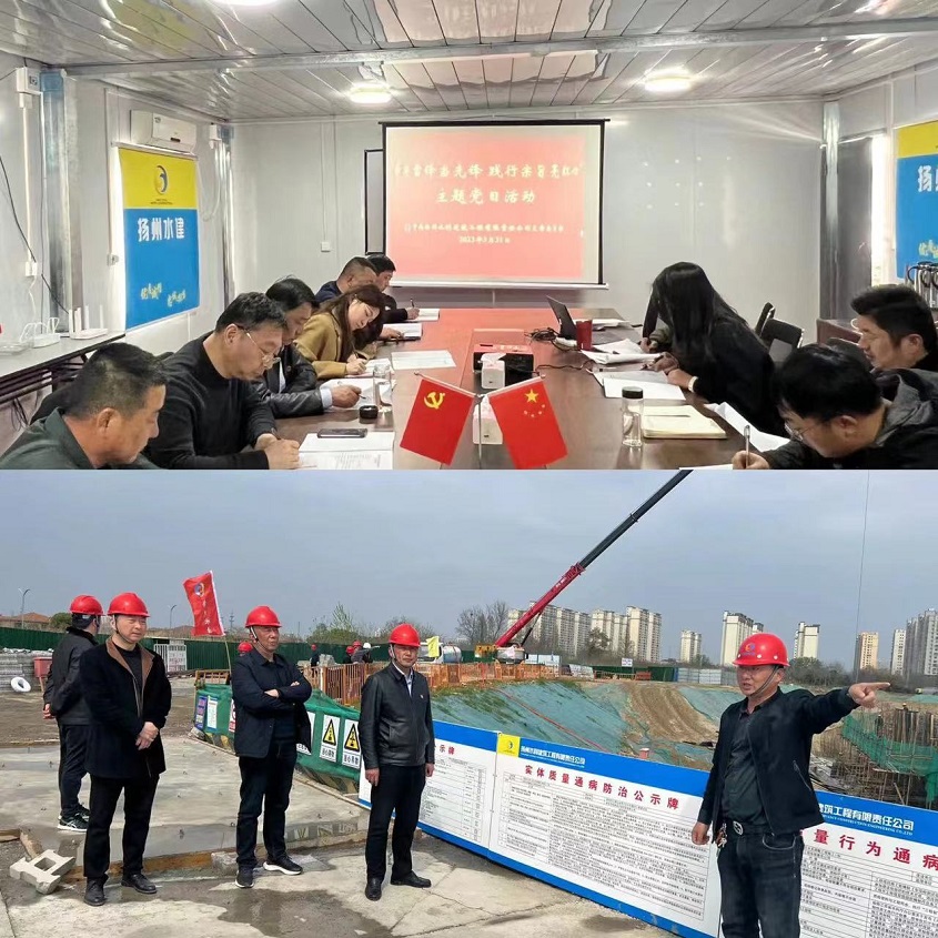 【概要描述】為認真貫徹落實習(xí)近平新時代中國特色社會主義思想和黨的二十大精神,結(jié)合擦亮“紅心”黨建品牌及弘揚雷鋒精神,3月31日,揚州水利建筑工程有限責(zé)任公司黨支部組織開展“學(xué)習(xí)雷鋒當先鋒踐行宗旨亮紅心”主題黨日活動,支部全體黨員、入黨積極分子和江都區(qū)江橋片區(qū)項目部有關(guān)人員參加活動?! 』顒邮紫葏⒂^了江都區(qū)江橋片區(qū)項目部水系調(diào)整工程施工現(xiàn)場,項目部工作人員從建設(shè)進度、安全、質(zhì)量管理等方面進行了講解。隨后,全體人